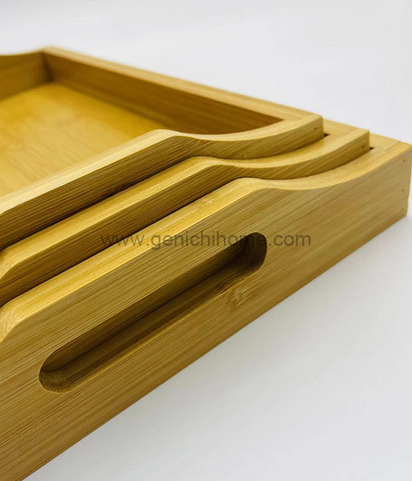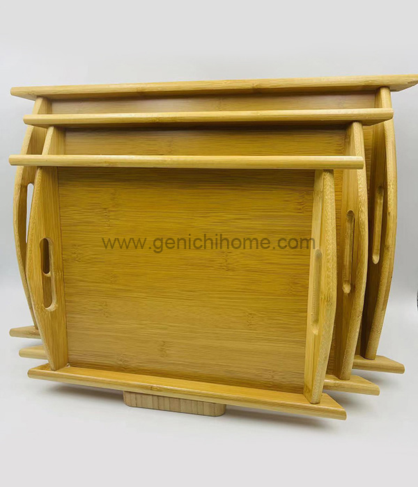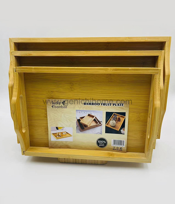 | Kích thước là 37,5*26*4,5cm, 32,5*23,5*4,5cm, 28*20,5*4,5cm và chiều cao tổng thể là 6,5cm | 1202 | 40*54*30 | 0.065 | 12 | Cây tre | Cạnh cong mà không có hoa văn, Hỗ trợ các dịch vụ logo tùy chỉnh. |